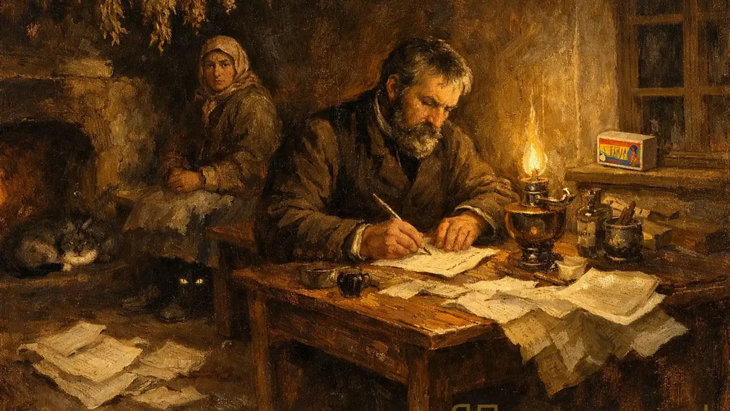На лицевой стороне — привычное: дозировки, латынь, печать земского врача. На обороте — карандаш. Торопливый, почти неразборчивый. «Учитель — 40 лет, пьёт, жену любит, но говорит — не люблю». «Дама с мопсом? Хуже, чем с собачкой». «Спросить Машу, как тот куст у пруда называется — для описания».