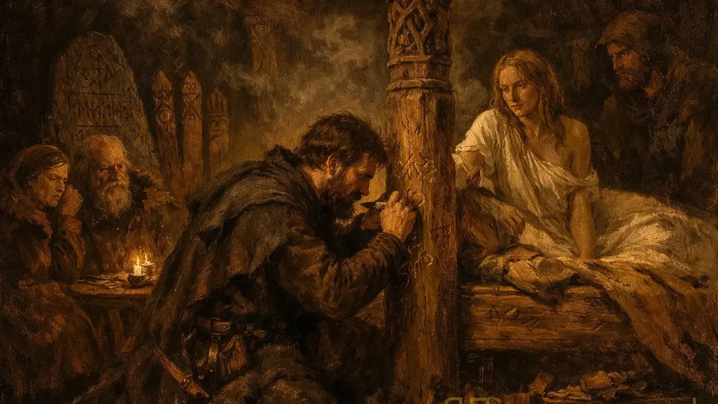 Теперь «Сага об Эгиле», XIII век, и вот где начинается литературный детектив. Эгиль Скаллагримссон видит больную девушку, на чьём ложе кто-то нацарапал «лечебные» руны; он читает знаки, ругается, соскребает ошибочную резьбу, жжёт щепки и вырезает новые. Девушке становится легче. Можно спорить о медицине, но сюжетный факт железный: в саге текст способен калечить и лечить. Не метафора, не «образ», а прямое действие в мире повествования.